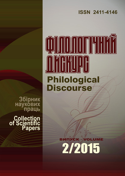 № 2 (2015)Збірник наукових праць "Філологічний дискурс" містить статті з актуальних проблем літературознавства (українська література, російська література, література слов’янських народів, література зарубіжних країн, порівняльне літературознавство, теорія літератури, фольклористика, журналістика, літературне джерелознавство і текстологія) та мовознавства (українська мова, російська мова, слов’янські мови, германські мови, романські мови, класичні мови, індоєвропейські мови, загальне мовознавство, перекладознавство, порівняльно-історичне і типологічне мовознавство) тощо.